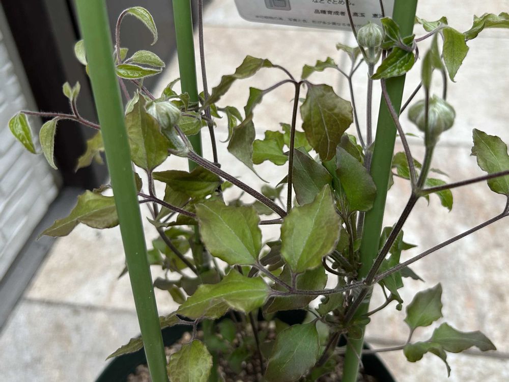 蕾が見えてきました。4月には咲き始めそうです。ツルが短めでコンパクトに満開になりそうです。