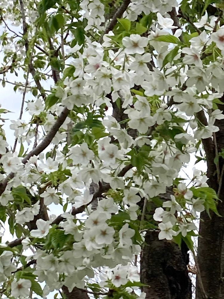 珍しい白花 桜餅に使われる葉は大島桜の葉を塩漬けにしたものだそうです