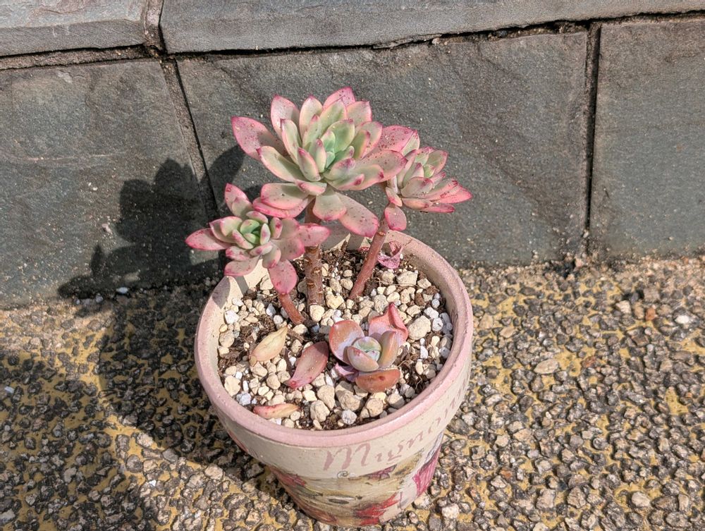 ミニベル錦と一緒の鉢に同居しているのは黄麗錦の葉挿しとおまけで頂いたミルクティー☺