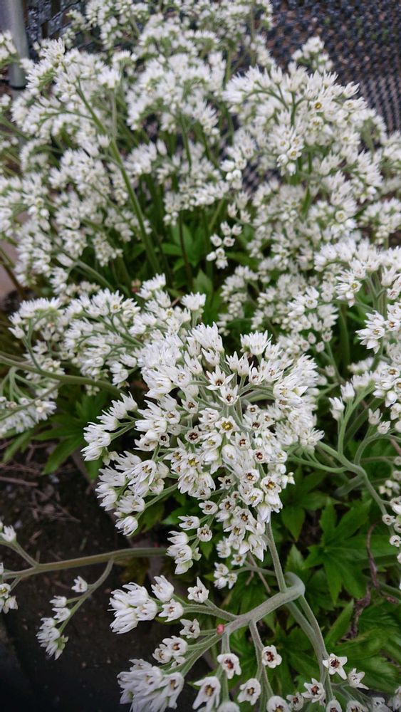 葉っぱより花芽が先に展開して、真っ白い花を咲かせます✨