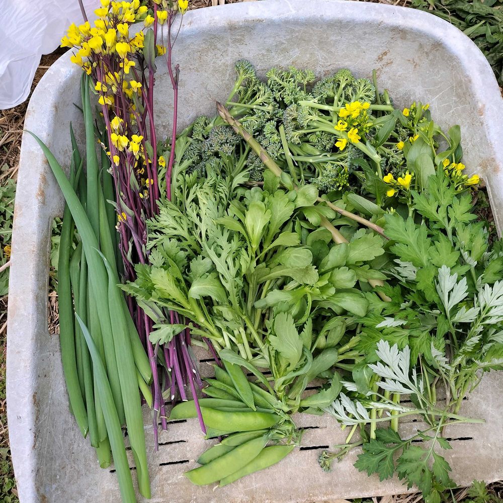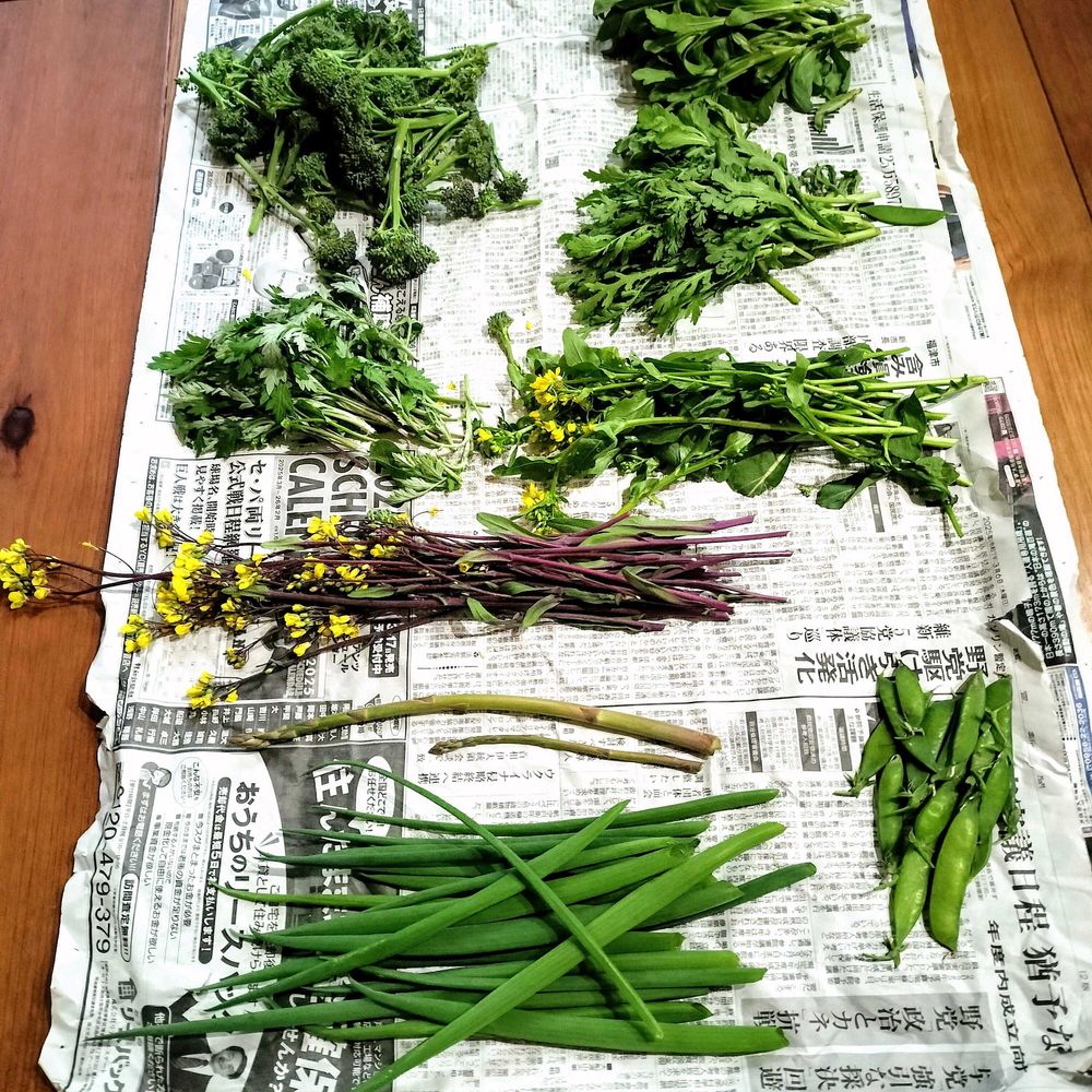 紅菜苔、ネギ、サラダスティック、美笹エンドウ