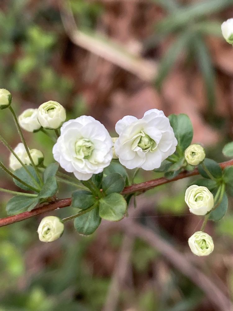 これは私の大好きなバラ🌹科の花です。花の感じはユキヤナギに似て枝に沿って線状に咲きますが、花の作りがもっと緻密です。ただ、これは私の好きな国産種ではなく中国原産の外来種です。残念😅。花の直径は約10mmで小さいのですが沢山咲くので見事です❣️。
