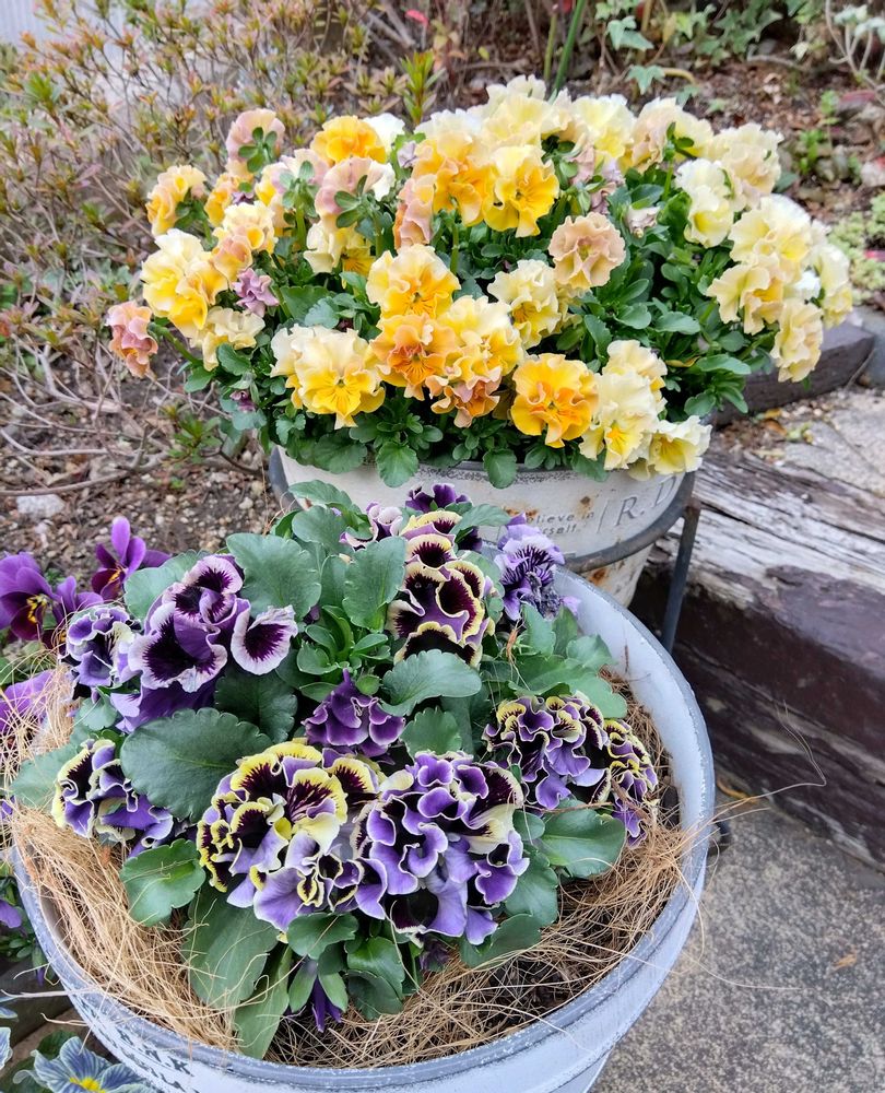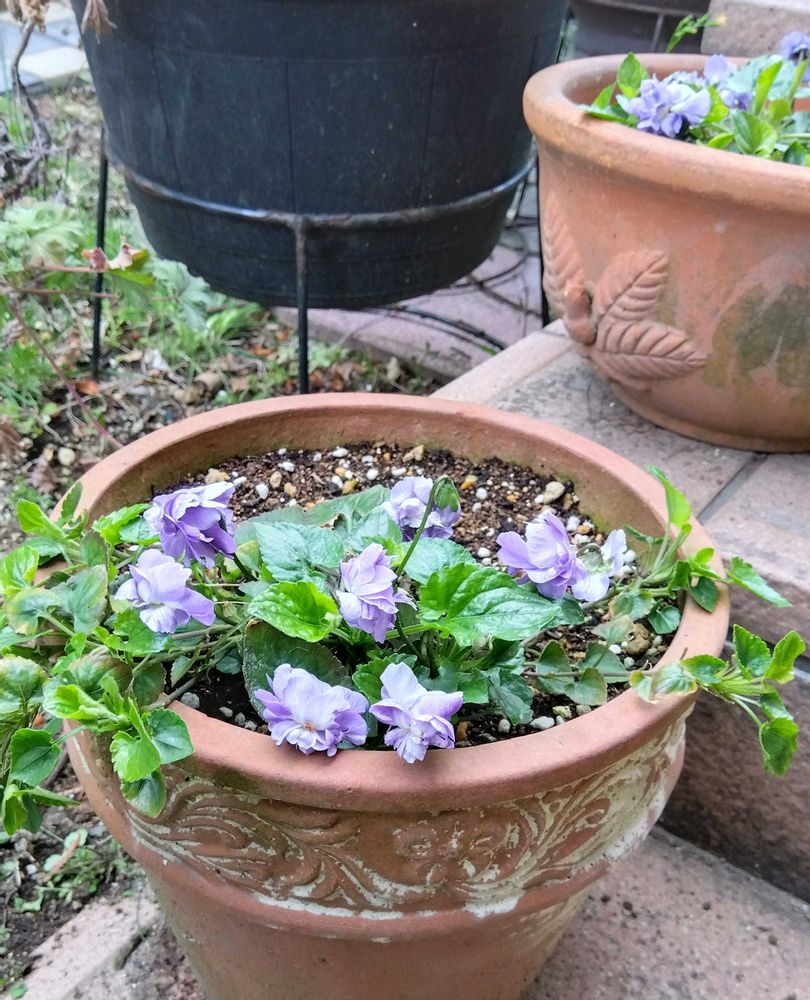 ④八重咲きスミレ💜犬友さんから上手く育ってきたからと鉢ごと2鉢頂きました😍