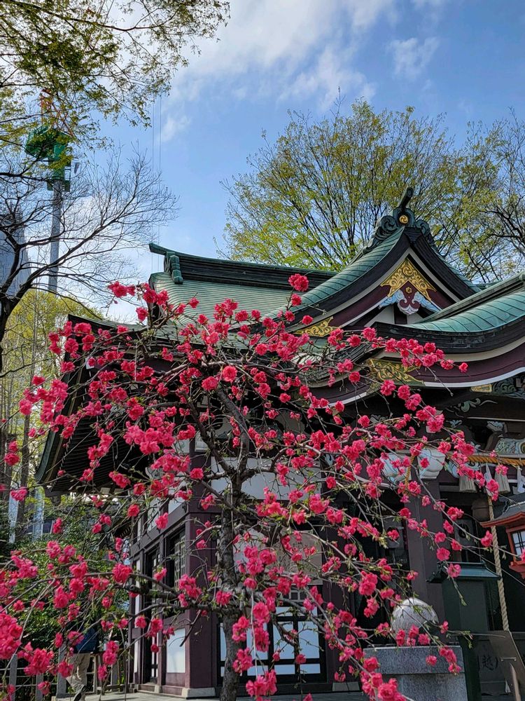 真っ赤な枝垂れ桃のお花とても素敵ですね😊