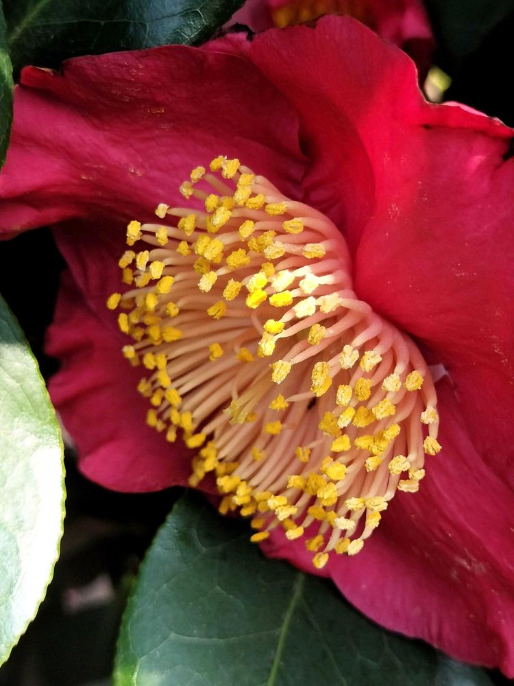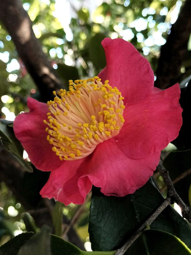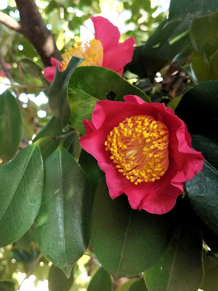 初詣に行く近所の八幡様に、あらこんな大きな椿が‼️