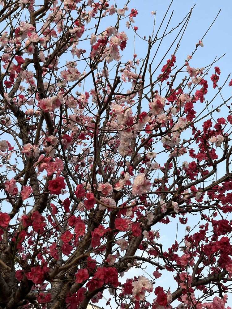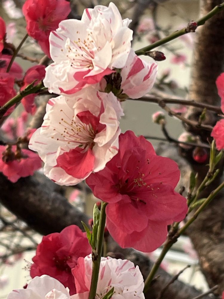 ピンク色、白色、斑入りと素敵✨な桃のお花ですね。一色しか見たことがありませんでした。