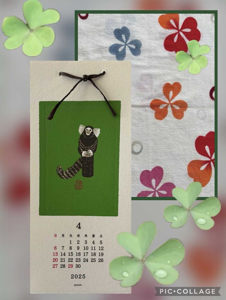和紙のカレンダーにコモンマーモセットの取り合わせが不思議だけど似合ってますね🤗