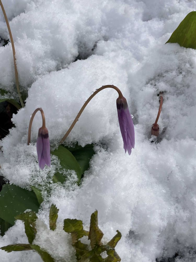 せっかく咲き始めたカタクリも雪に埋もれてかわいそう