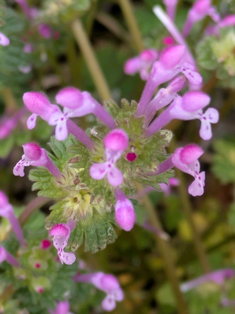 そう、ホトケノザって、結構かわいいんですよね😊お向かいのブロック塀の下でも咲いています。