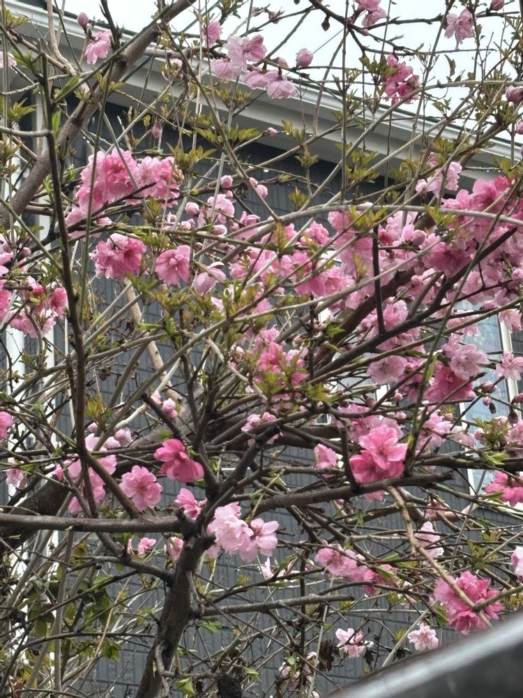 枝垂れモモなんですが、去年結構枝垂れの部分をカットしたら、上に伸びた感じ🍑💦