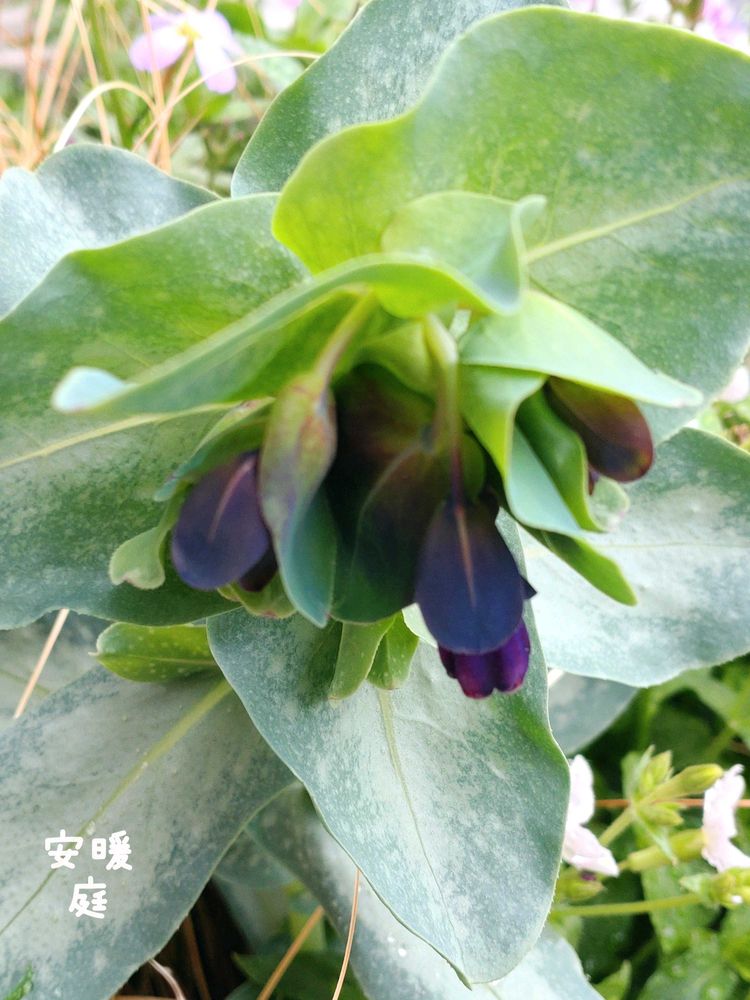 セリンセは青みがかった葉色と濃い紫の花が良い雰囲気を出してくれるので、毎年少しだけ種まきしています🎵