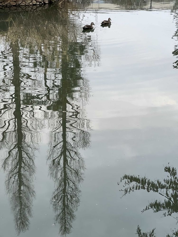 美術館近くの城跡の桜と溜池のトリさん