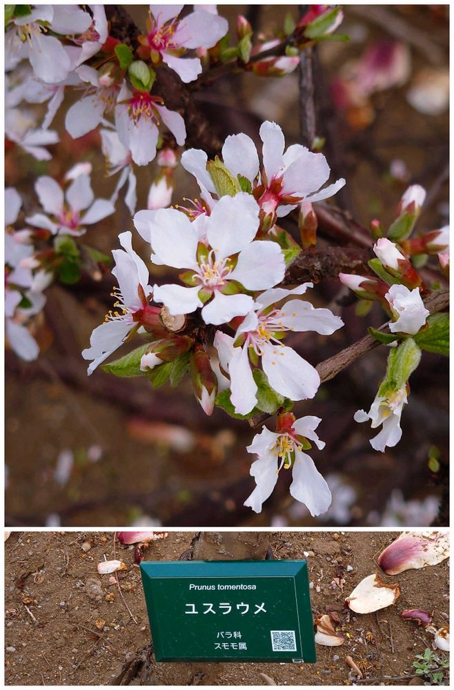1メートルくらいの小さな木でしたが、かわいい花を咲かせていました👀 ユスラウメは中国原産、梅雨のころに赤い小さな実をつけるようです🔴(農業試験場内にて)