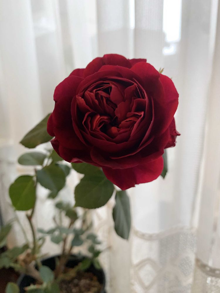今日は、曇り☁️空の一日でしたね、深紅の薔薇🌹美しいです。