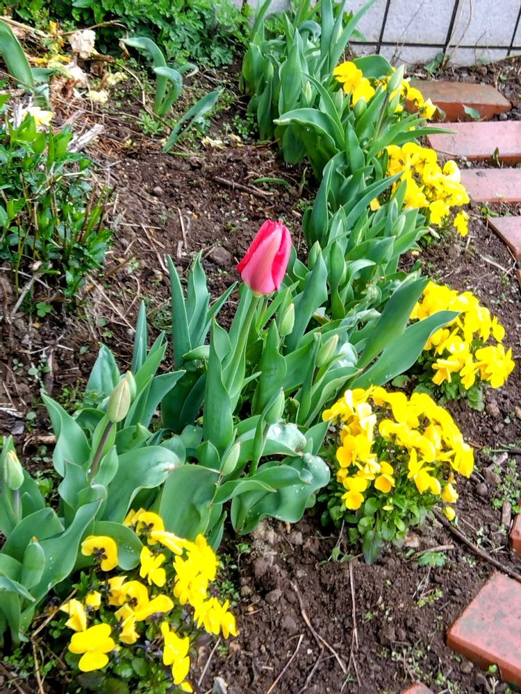 我が家の花壇のチューリップ🌷ひとつ咲きましたꕤ︎︎·͜·(*´˘`*)♡ウレシイ!