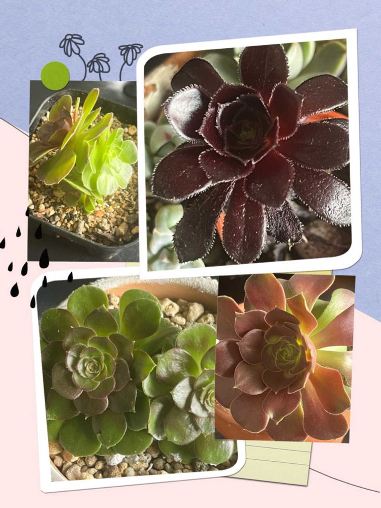 ①アオエニウムは、小さな4センチほどの黒法師とハロウィンばかりになっちゃいました😅