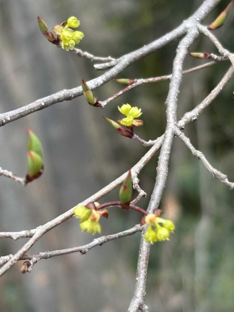 先週金曜日に山麓で見たアブラチャンは全く咲く気配がなかったのでびっくり🫢