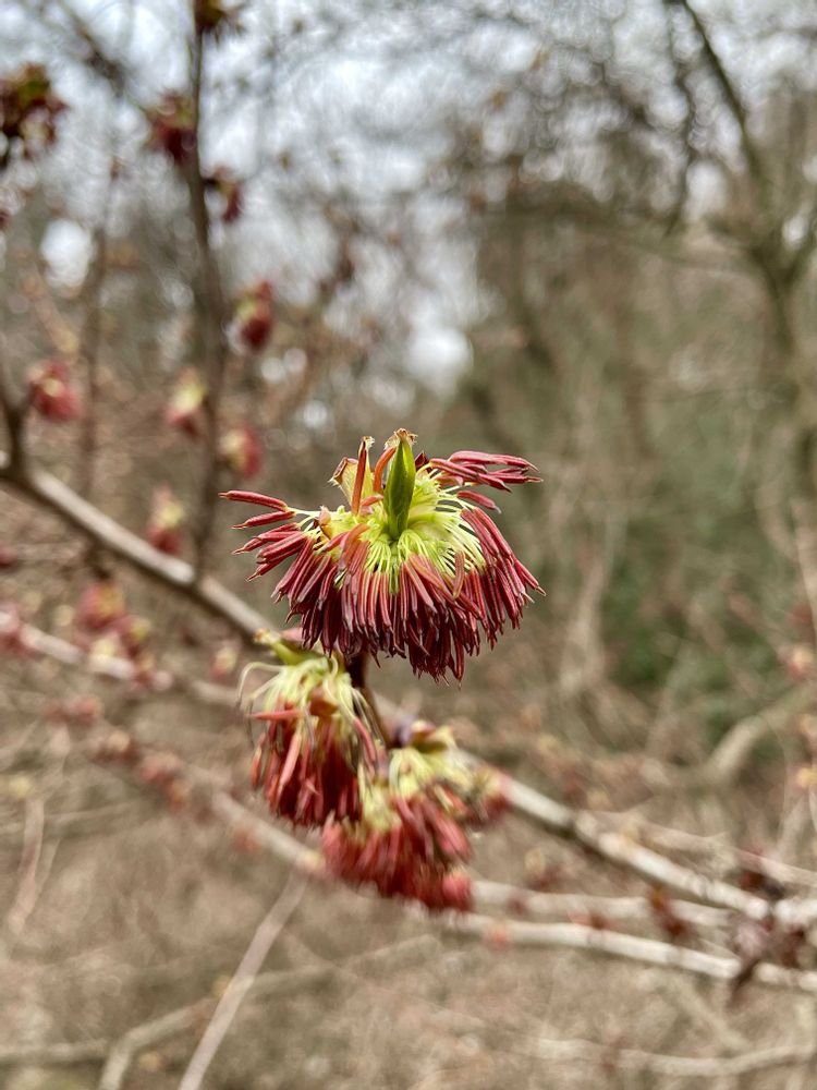 花びらは無く、赤い雄しべだけが目立つ!雌しべは隠れて見えず…😑