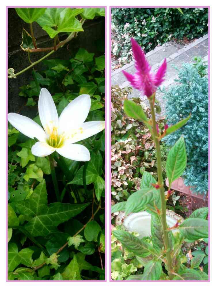 左側は花壇にポツンと咲いてくれた白い花🌼