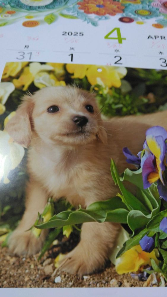 ④4月のカレンダー📆 別の月のダックスフンド🐕だけど、使います