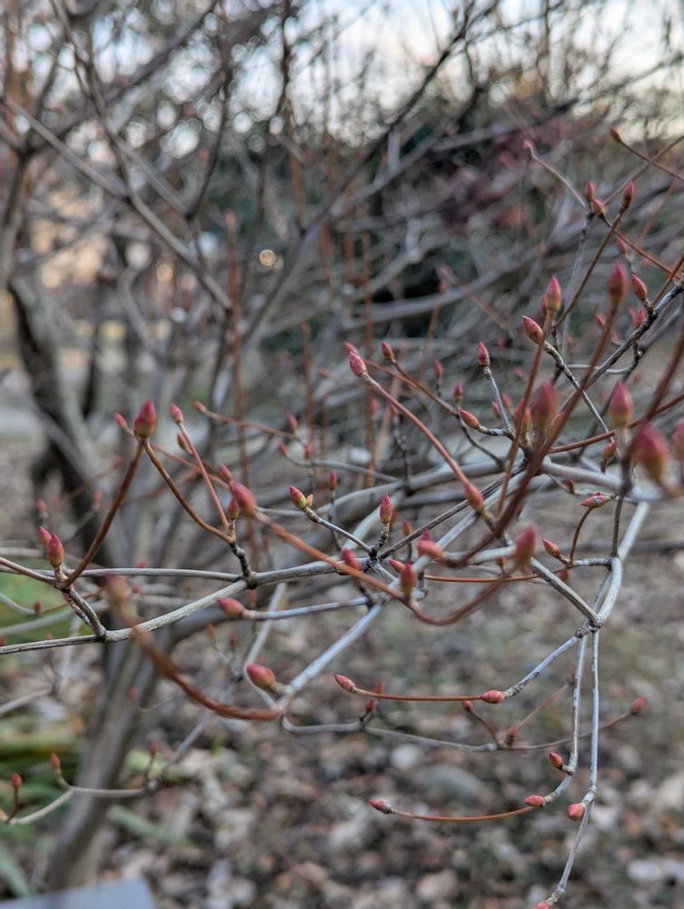 ②今日出会ったドウダンツツジは、芽吹いてきたところ、今年は、あと何日位でお花が咲くでしょうか🤔