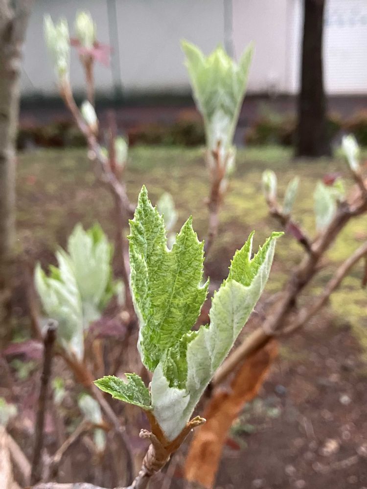 カシワバアジサイは同じくらいの新芽ちゃんです🌱