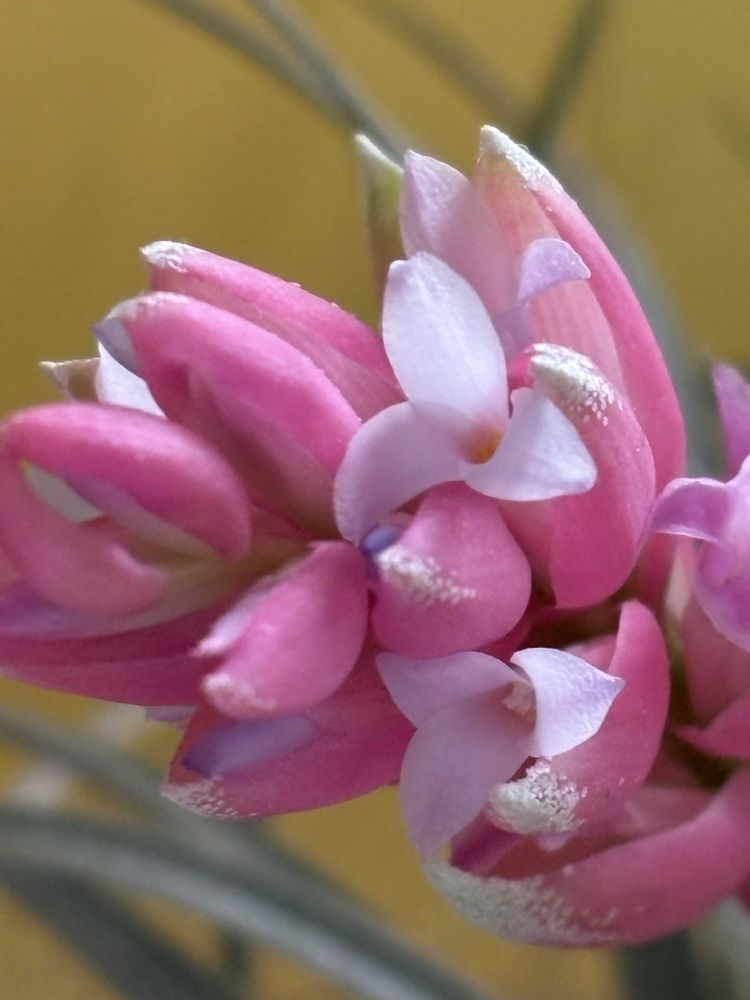 ピンクの間から小さい花が出ています〜今まで咲いたチランジアの花とは違う感じですね(*´ー`*)