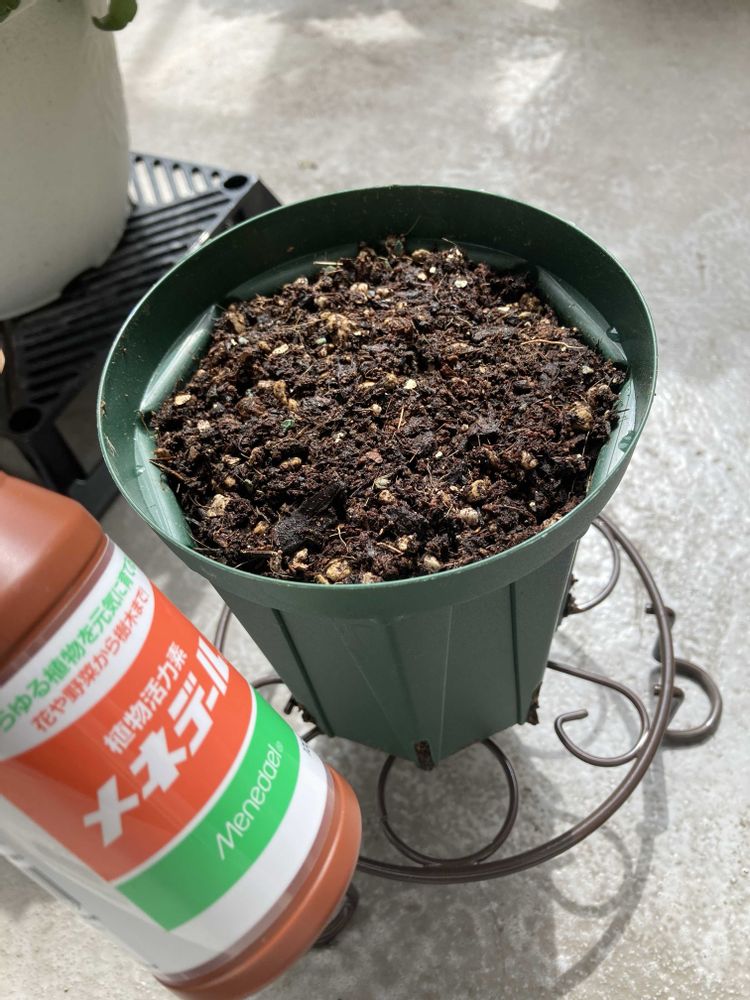 10日経ったので、「メネデール」を混ぜた水で、初めての水やり。