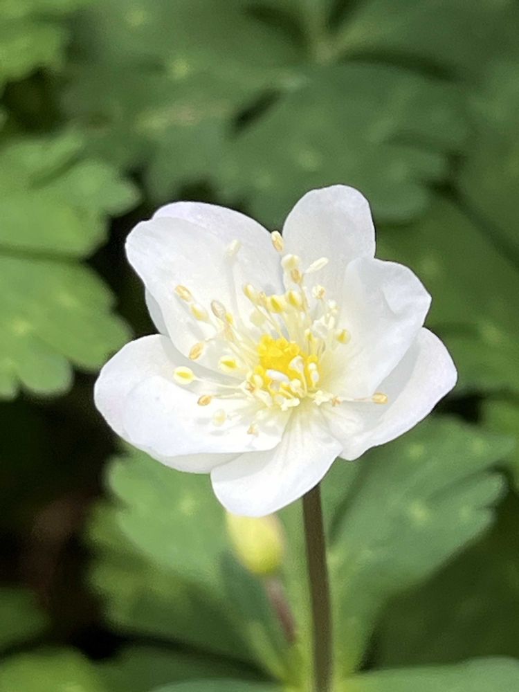 キンポウゲ科イチリンソウ属の多年草。春山を代表する花のひとつ。主に山地の林床などに群落をつくって生えるとか