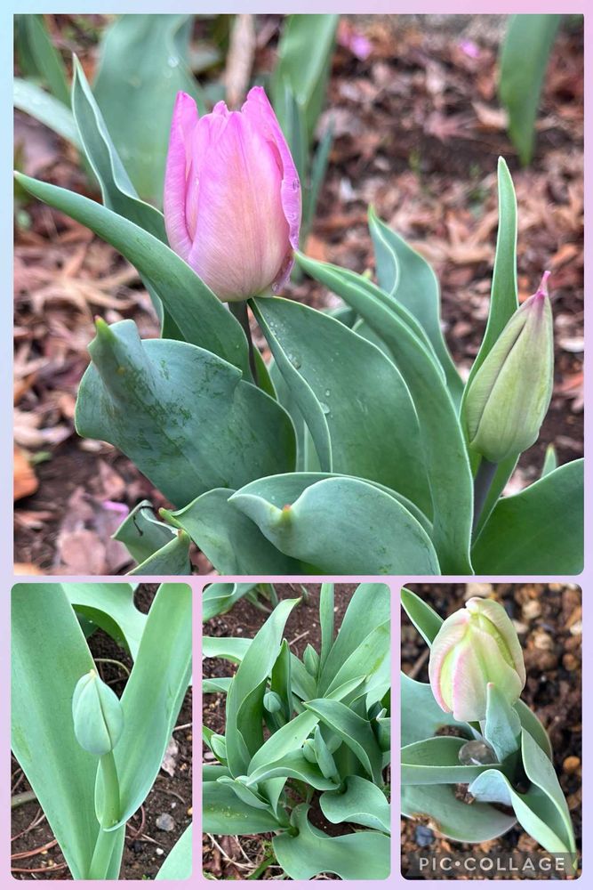 小さい、淡い色のチューリップは、まだまだ可愛くて切れません…🌷