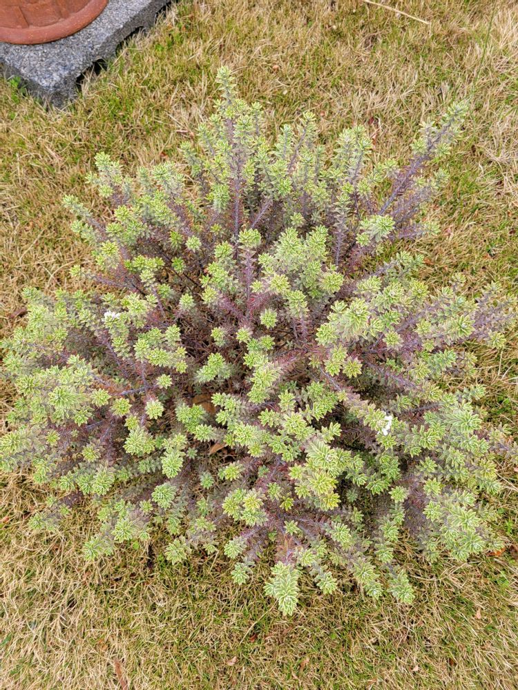ウエストリンギア・スモーキーホワイトが葉を枯らすことなく余裕で冬越し🙌今薄っすらグレーがかった白いのお花が二つ咲いています💕雨・風・暑さ・寒さに強く手のかからない丈夫なコです💪