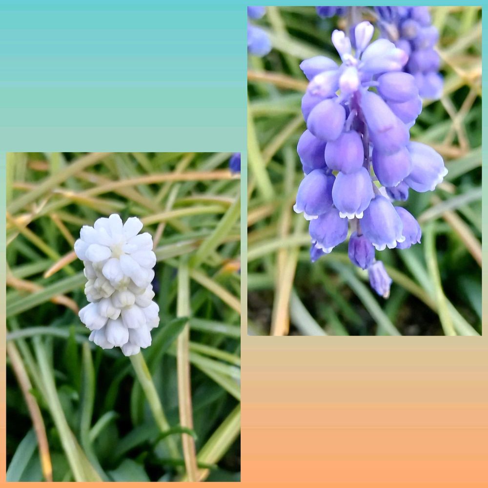同じ鉢に3種のムスカリが植わっていますが今は2種咲いています🎶