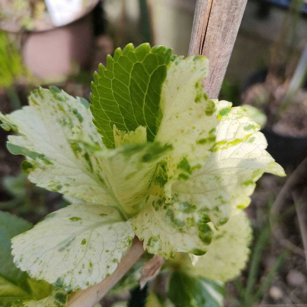 白繋がりで真っ白い葉っぱだった紫陽花が、まだらになっちゃいました🙅♀️これからは斑入りの日に投稿しますね!?
