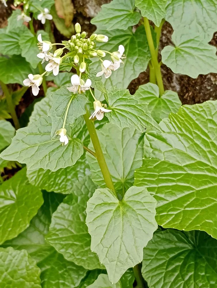 ③山ワサビの花 葉っぱツヤツヤ、美味しそう