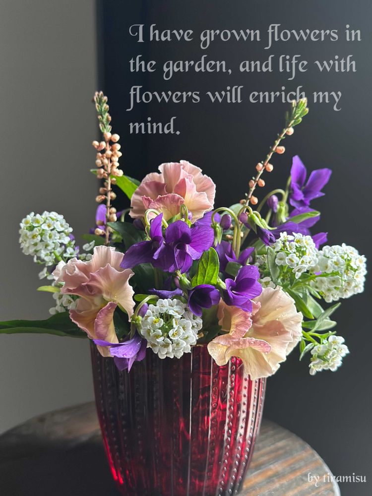 庭に咲いている花たちを生けて室内で楽しみました♡