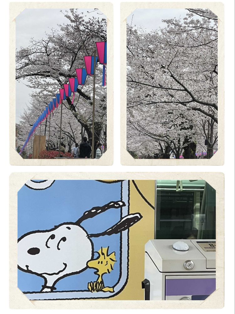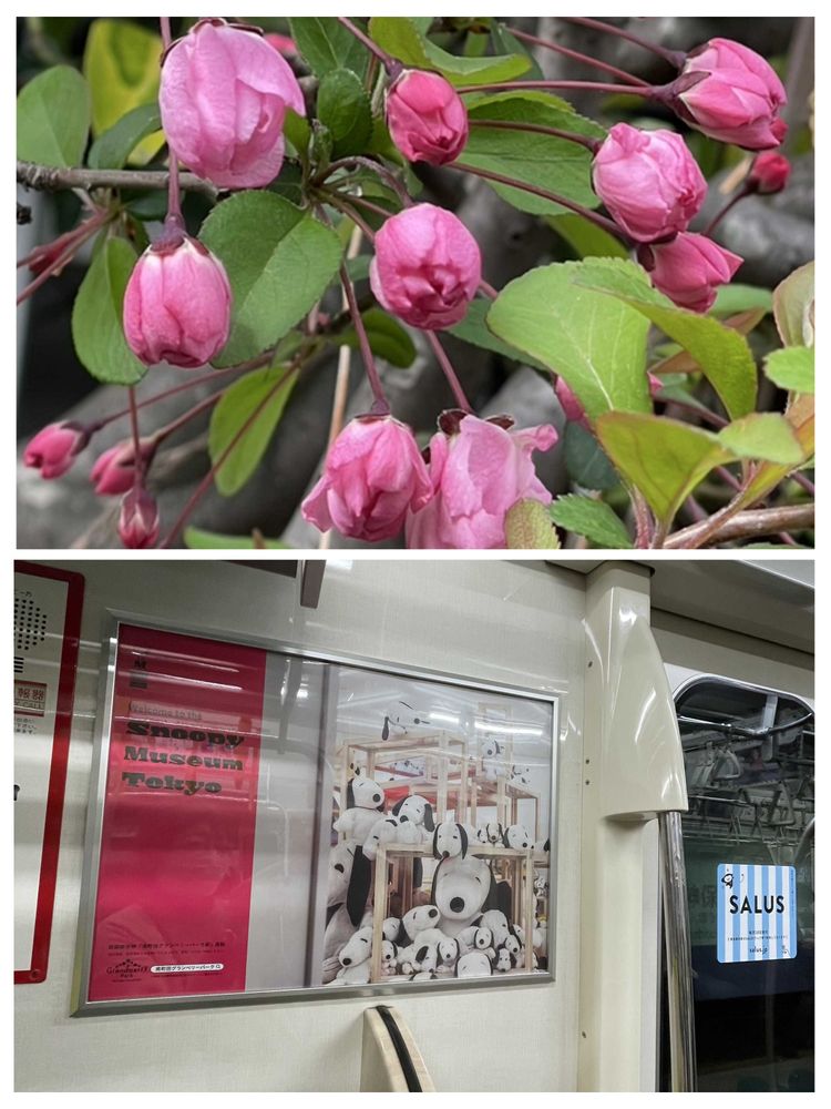 桜、ハナカイドウそれぞれのコラージュは、半蔵門線直通電車のスヌーピーバージョンです🚃