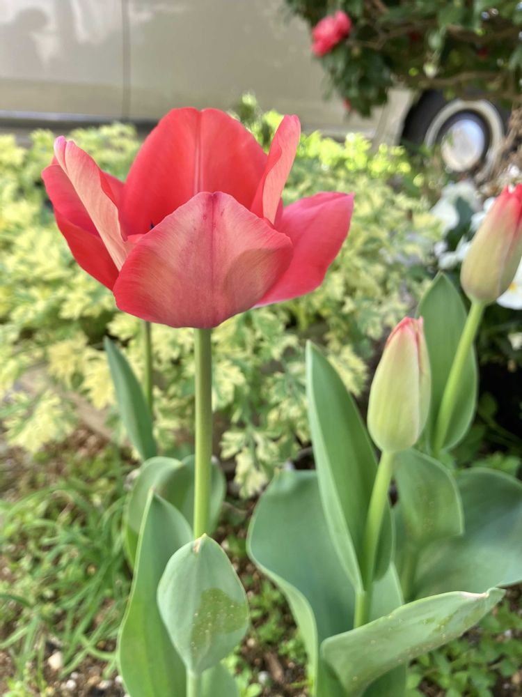 赤いチューリップさん元気良いですよね😉咲いてくれるとテンション(ง ˙ω˙)ว♪上がります🤭