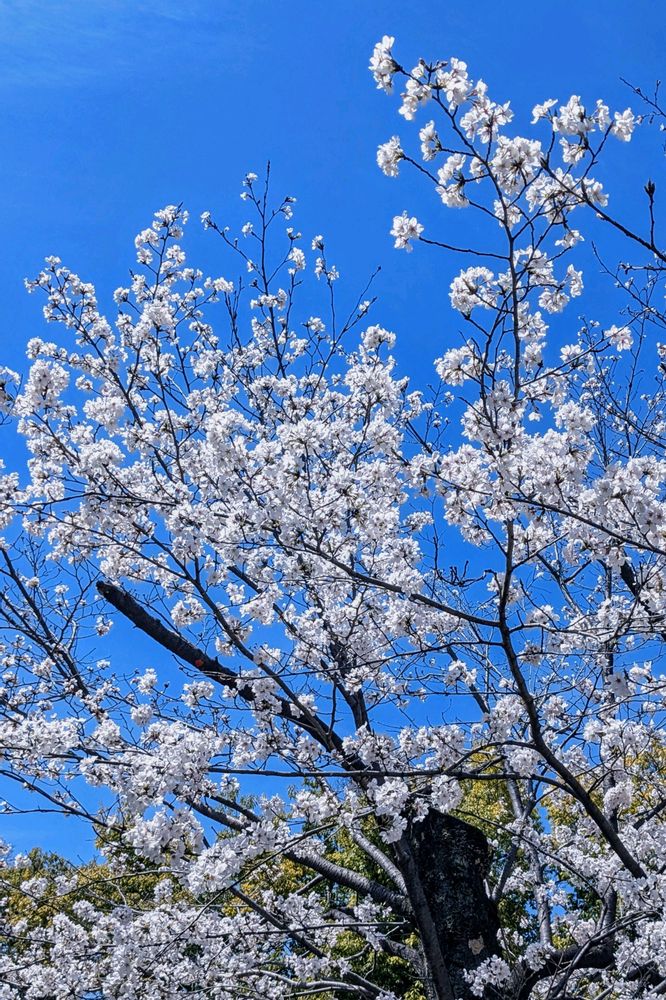 ソメイヨシノさんに白い🤍🤍お花は対照的でユニークなpicですねー♪♪♪