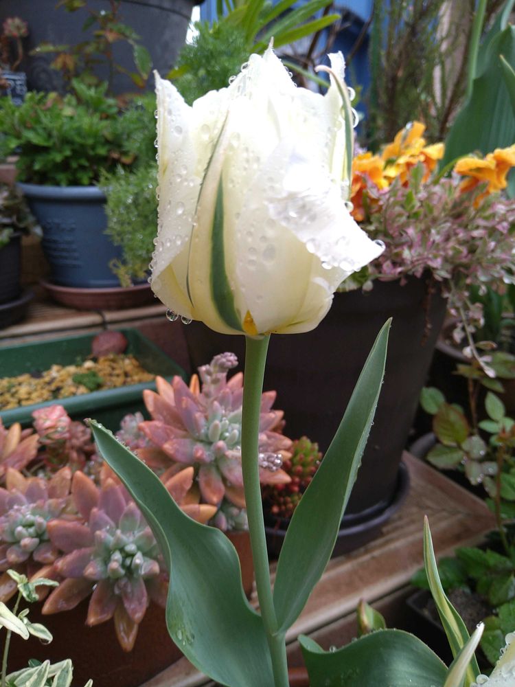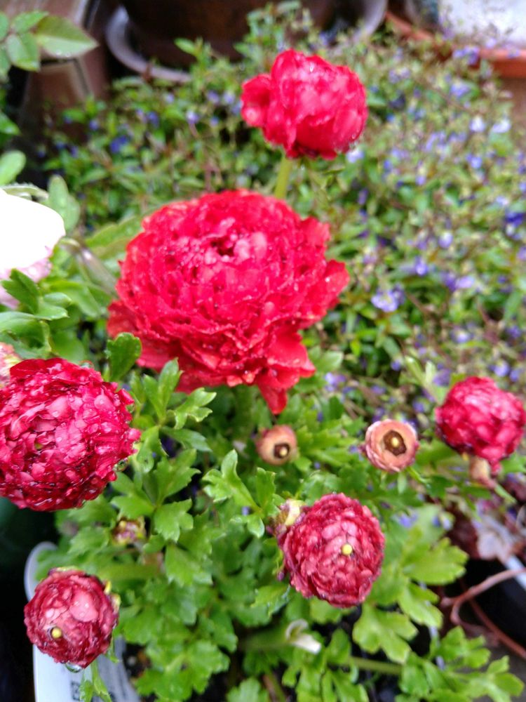 冷たい雨の中玄関先の花たち😍