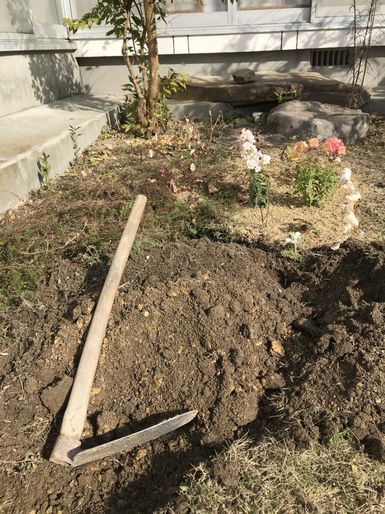 縁の前に、ラックスを植えたくて、なんちゃって花壇を、2021年1/3に作り始めました😆