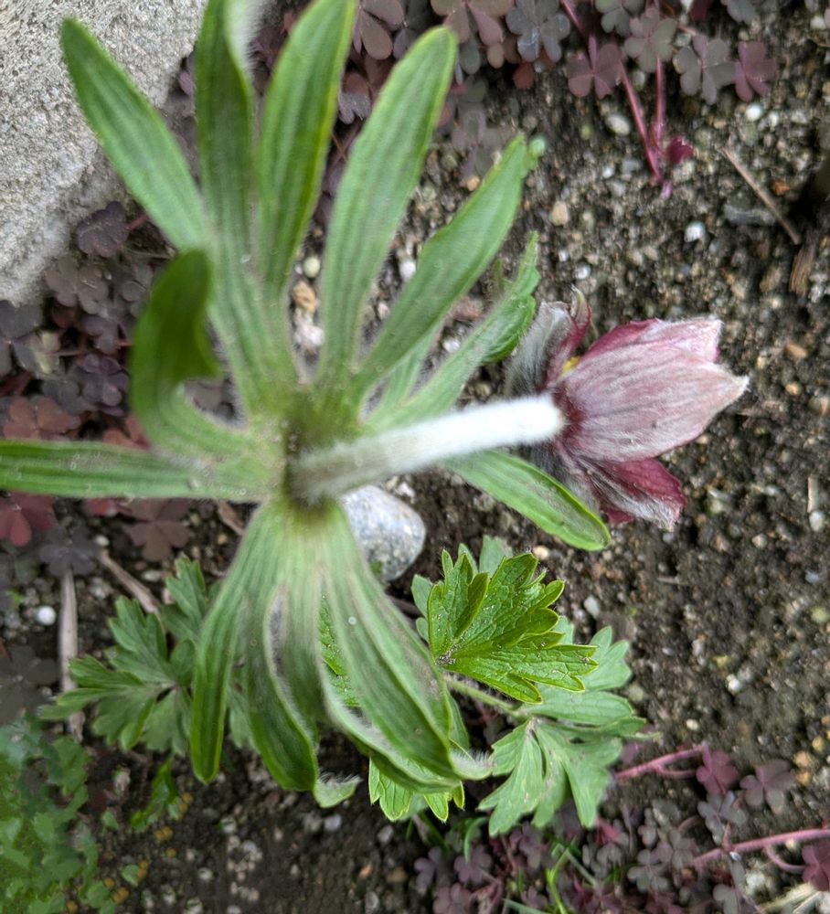 barchettaさんのオキナグサを見せて頂き、自生は無理でもどうしても自身で見たくなってしまい、タネを蒔いてから三年目にやっと花を見ることができました☺️