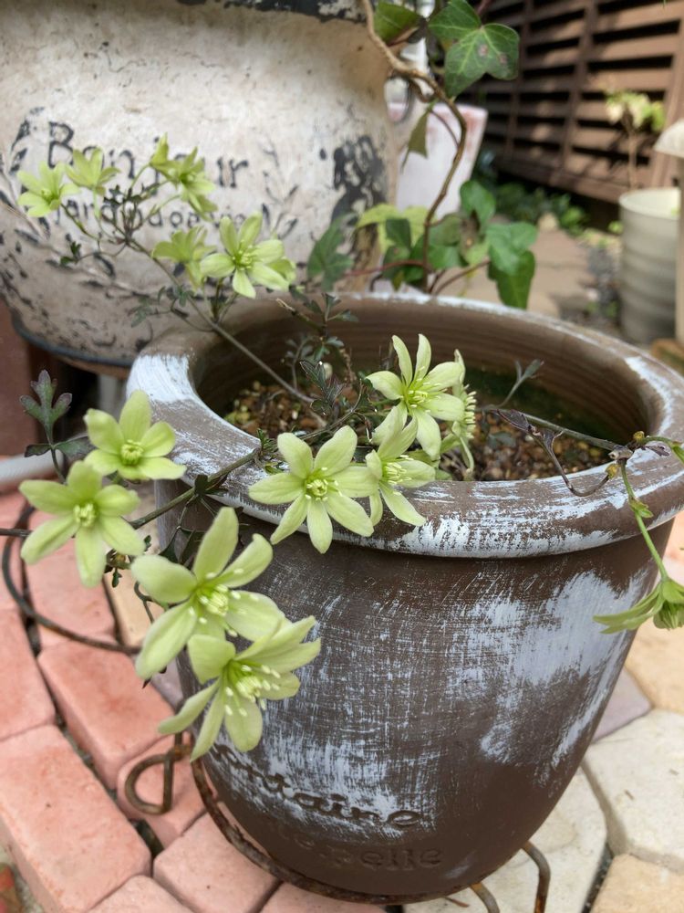 クレマチスの鉢はシンプルだったので白いペンキでザッと(雑に💧)模様を付けてます✌️😅🪴