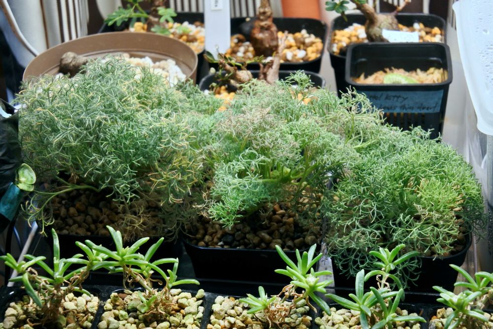 ペニクリナムは、腰水の3つがアフロっていて、腰水をやめた1つは締まった成長でしたが、鉢替えした時に葉が抜けてしまいました。結構デリケートですね。