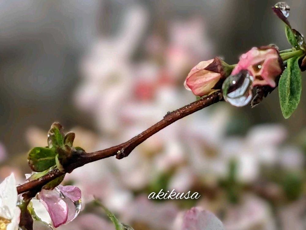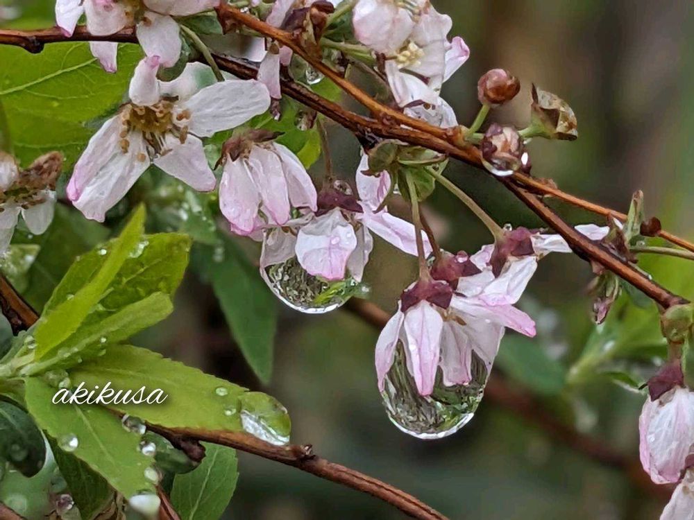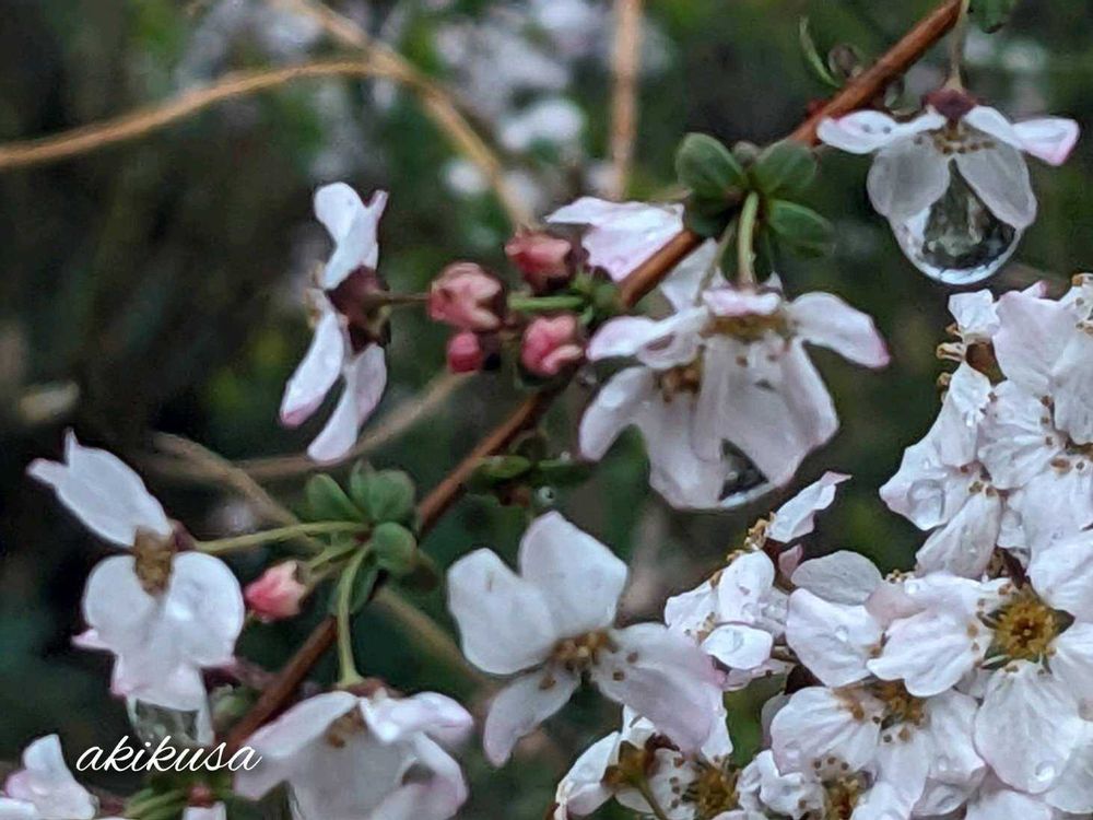 ピンクの雪柳の雨粒💧素敵なpicですね
