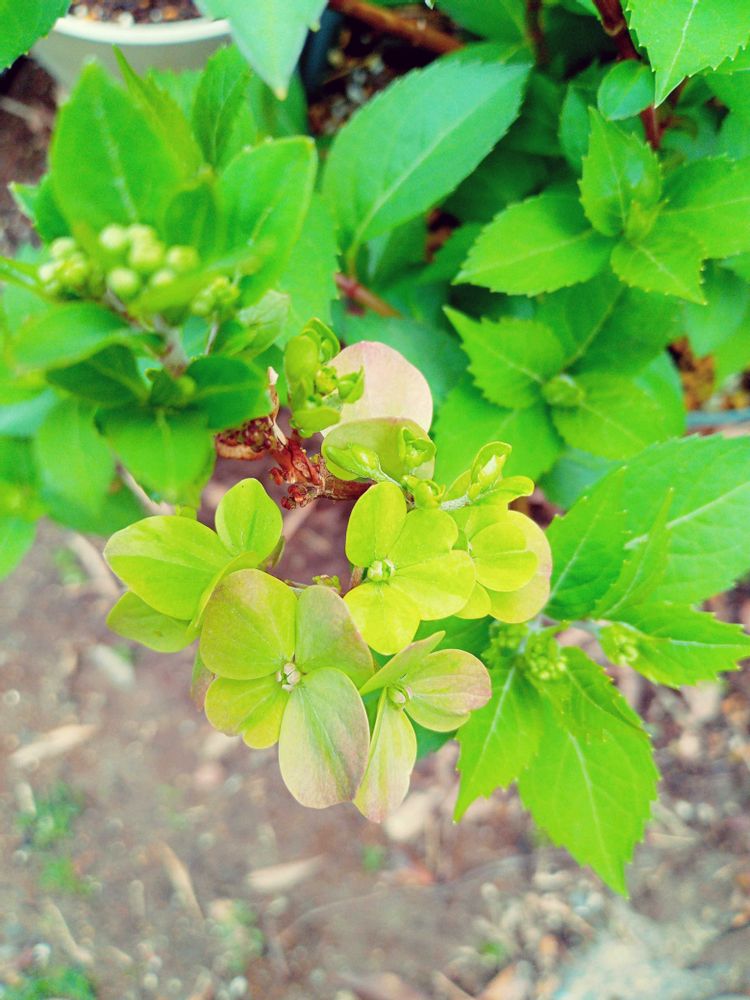 紫陽花PWのラグラジアクリスタルヴェール2咲いたけれど花が緑です💦他はつぼみなのに⁉️