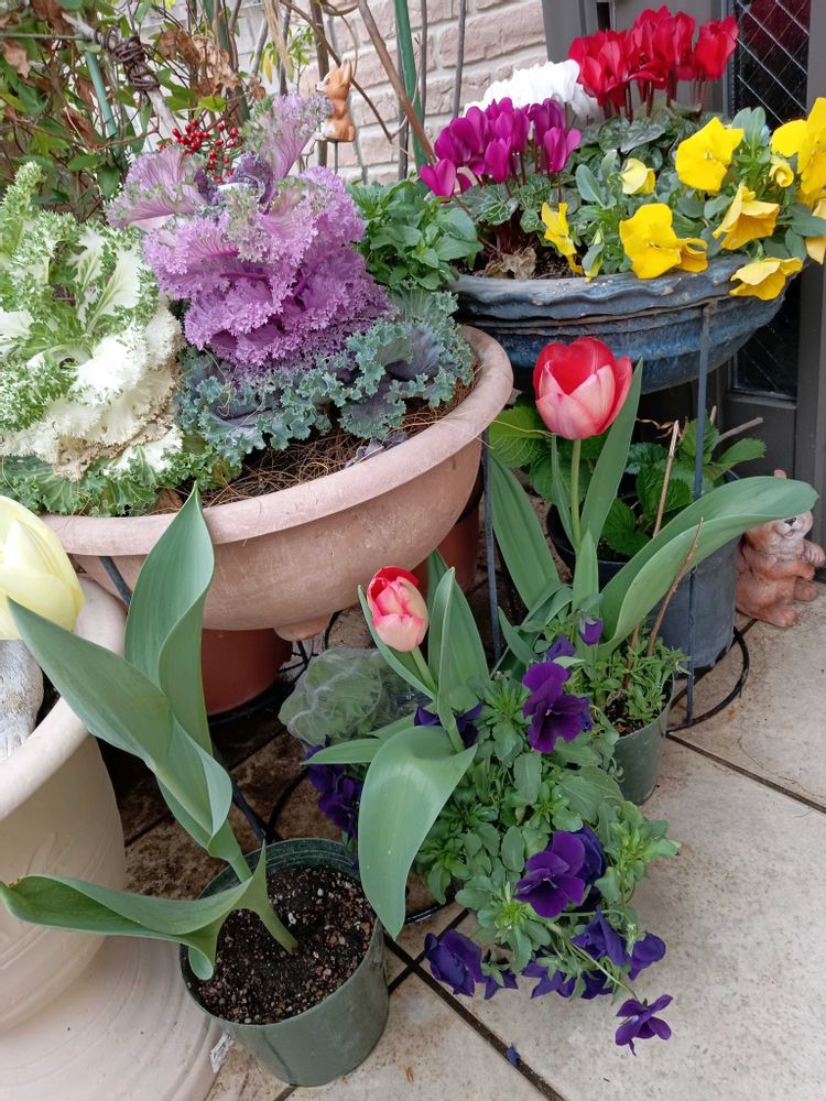 ①玄関アプローチ、春のお花達✨🌷
