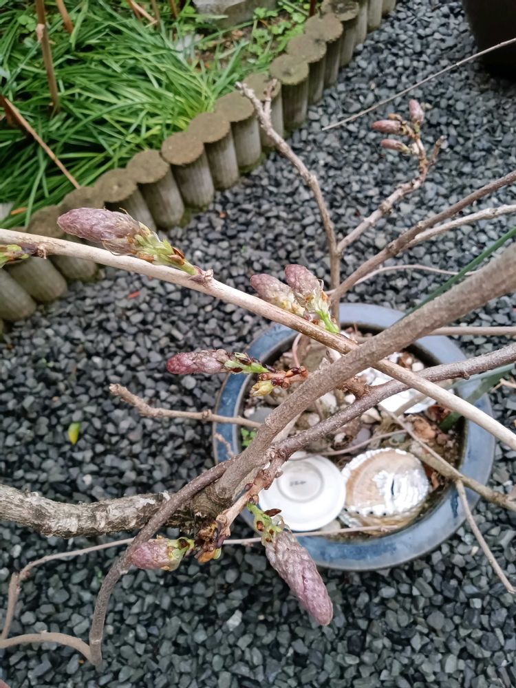 ⑤鉢植えの藤も芽吹き出しました、小さな蕾が出来ています✨💜