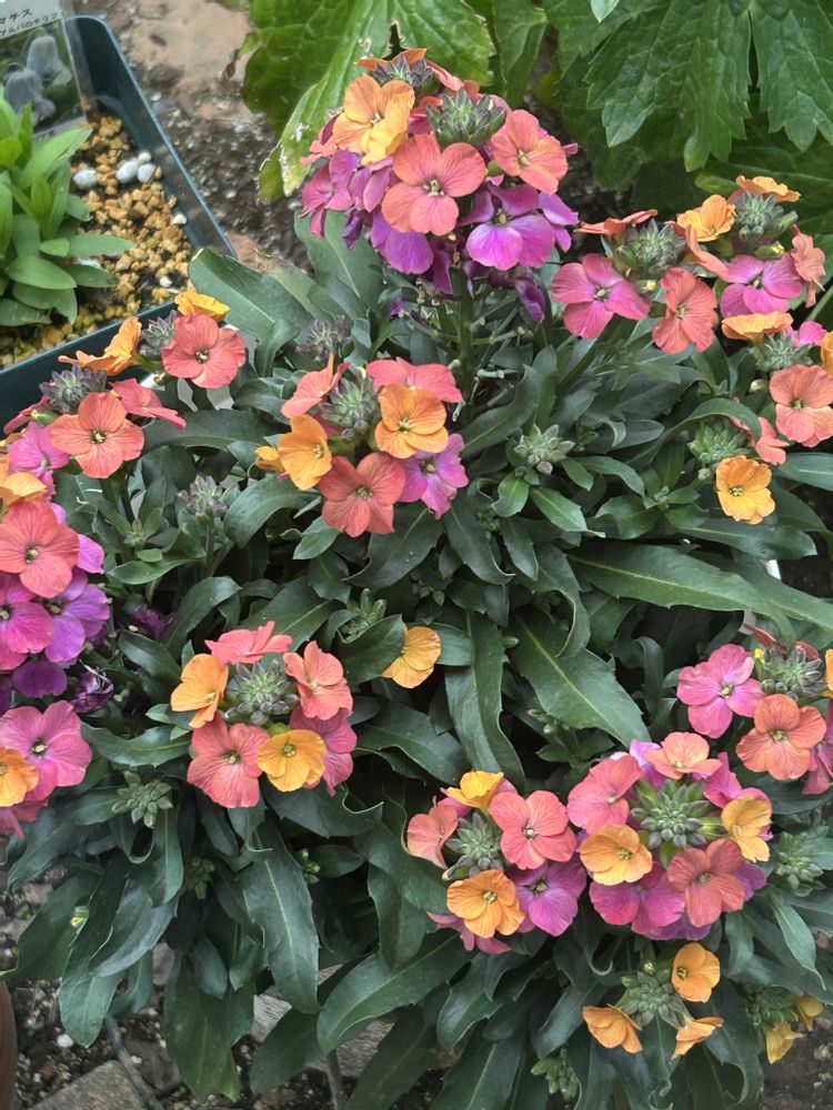 昨秋植え付けたエリシマムスプリングパーティ 株が大きくなって開花しました🌸とってもカラフルです