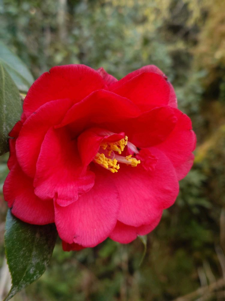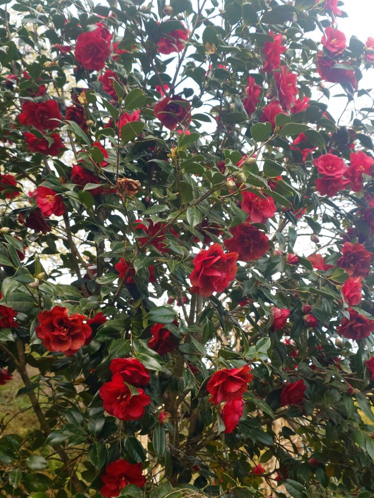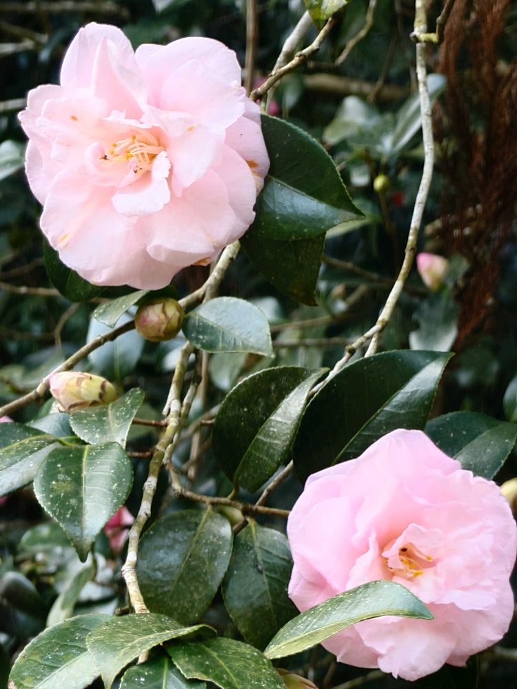 真っ赤な椿 ピンクは乙女椿でしょうか。