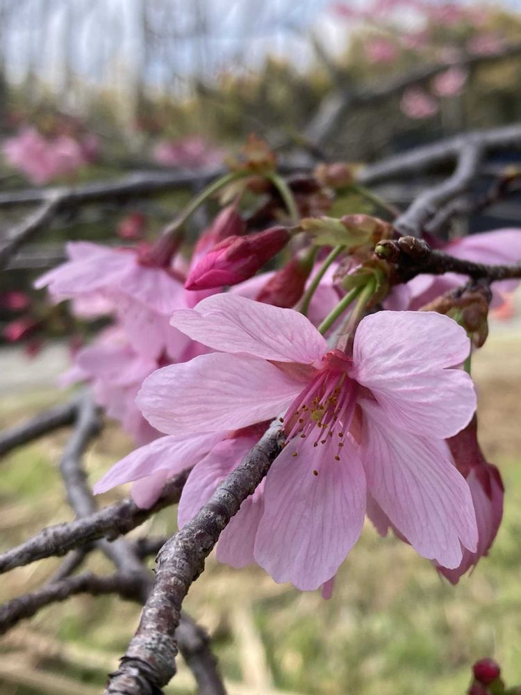 東松山市農林公園の帰り道、道路脇に一本の河津桜さんを見つけました🌸